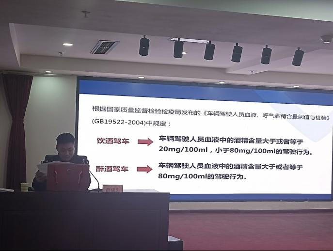 讲堂上,市交警三大队宣教中队宣讲民警周芃羽和薛成岩两位同志采取以案说法的形式,为中心全体干部职工带来了一场生动的“防治酒驾醉驾问题”专题教育讲座。结合辖区内发生的交通事故,通过播放酒驾醉驾案例视频,对酒后驾驶的危险性、产生的后果等方面进行了讲解,深刻剖析了酒驾醉驾要付出高昂的法律成本、经济成本、家庭成本、社会成本和时间成本,令人警醒、发人深思。同时,对大家提出的有关问题进行了现场答疑。