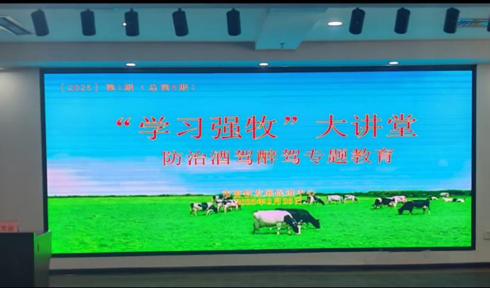 2月26日,市畜牧发展促进中心举办第6期“学习强牧”大讲堂,邀请由5名警官组成的市交警三大队宣讲团,为中心全体干部职工开展了“防治酒驾醉驾”专题宣讲及交通法规知识普及。
