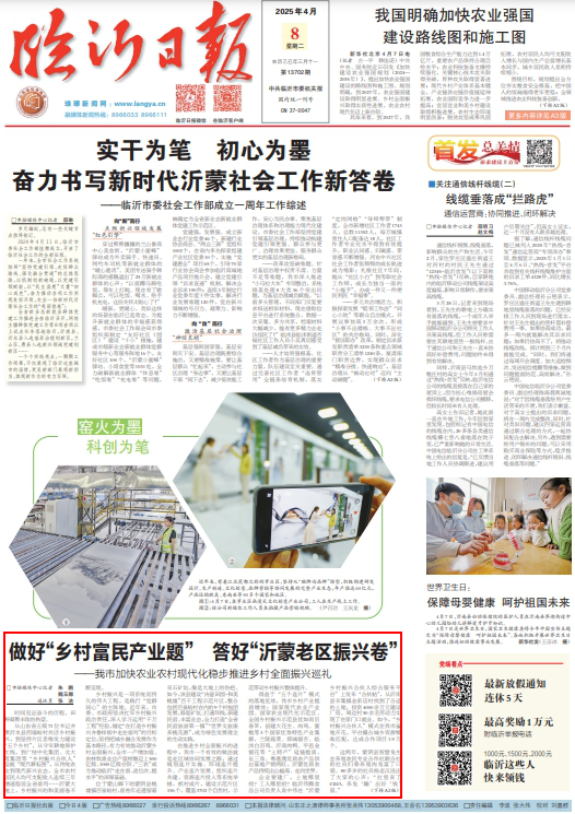 乡村振兴是一项系统而持久的伟大工程,是践行“党群同心”的主阵地。近年来,市委、市政府坚决扛牢乡村振兴政治责任,深入学习运用“千万工程”经验,锚定“在打造乡村振兴齐鲁样板中走在前列”的目标定位,坚持把城乡融合发展作为基本路径,有力有效推动沂蒙乡村全面振兴,全市一产增加值、农林牧渔业总产值相继迈上500亿级、1000亿级台阶,“三农”成为推动临沂“走在前、进位次、提水平”的深厚基础。