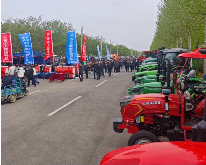 4月12日,首届山东绿色蔬菜产业博览会在兰陵县盛大开幕,农机参展成果丰硕。本次博览会农机参展企业达14家,展出各类农业机械120余台。临工300马力新能源混动拖拉机、道依茨法尔120马力变速换向拖拉机、100升大疆无人机、大蒜收获机等高精端农业机械首次亮相,吸引众多目光。参展中有7家企业成功签约,10家与省内外购机商户进行销售意向互动。