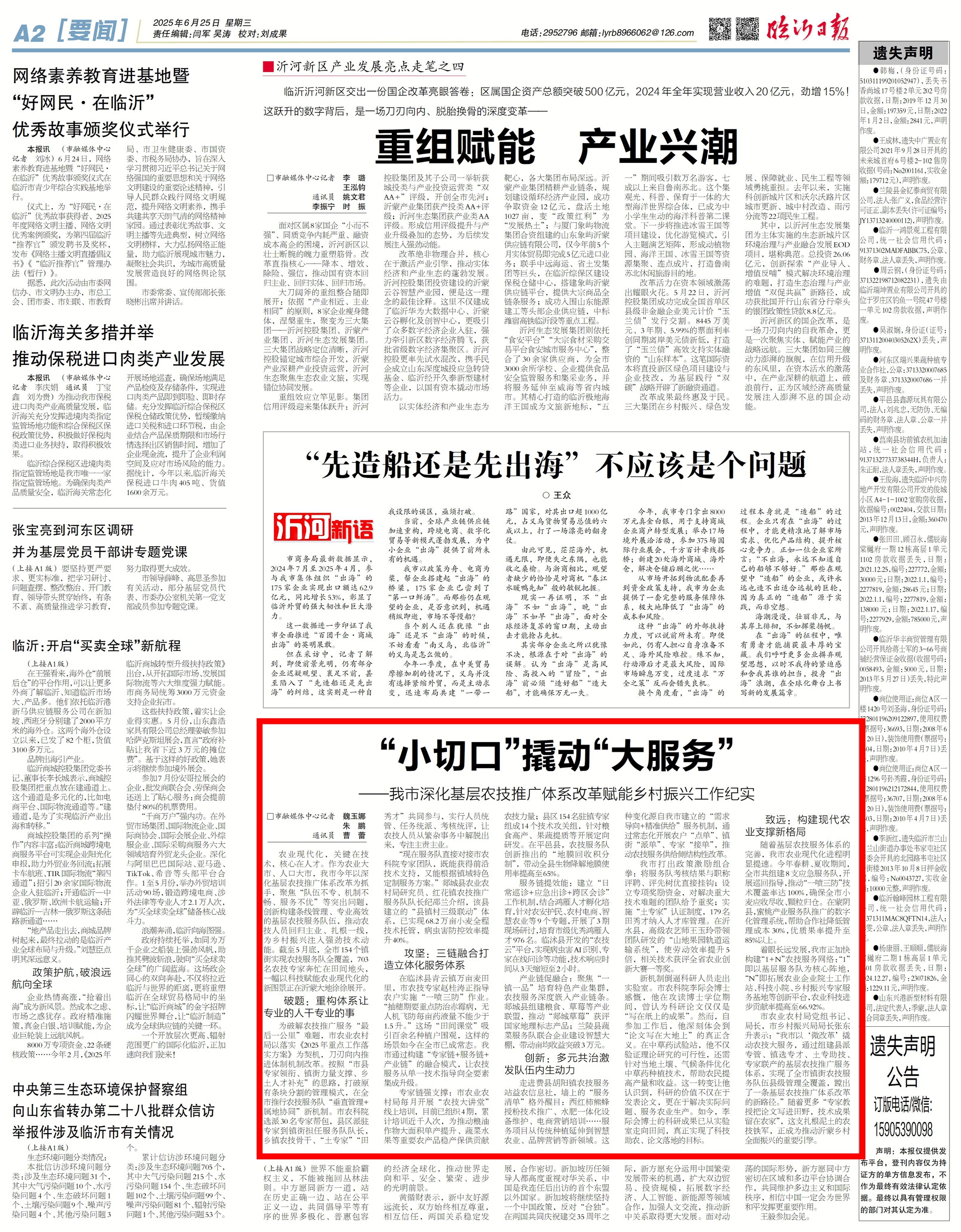 市农业农村局党组书记、局长,市乡村振兴局局长张东升表示:“我市以‘微改革’撬动农技大服务,通过组建县派专管、镇选专才、土专助技、专家联产的基层农技推广服务体系,实现了全市镇街农技服务队伍县级管理全覆盖,蹚出了一条基层农技推广体系改革的新路径。”随着更多“专家教授把论文写进田野,技术成果留在农家”,这支扎根泥土的农技铁军,正成为推动沂蒙乡村全面振兴的重要引擎。