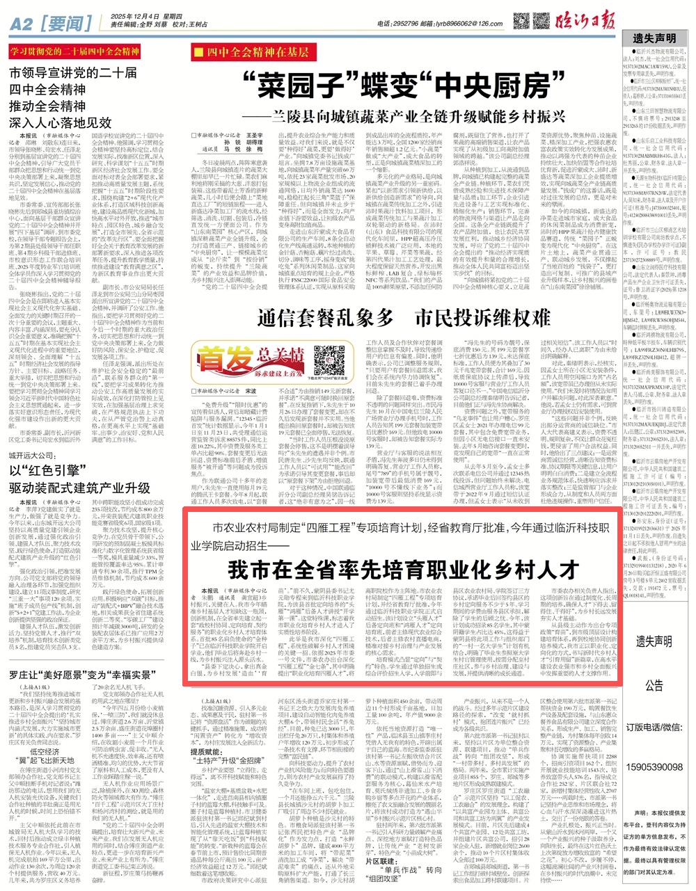 市农业农村局制定“四雁工程”专项培育计划,经省教育厅批准,今年通过临沂科技职业学院启动招生——