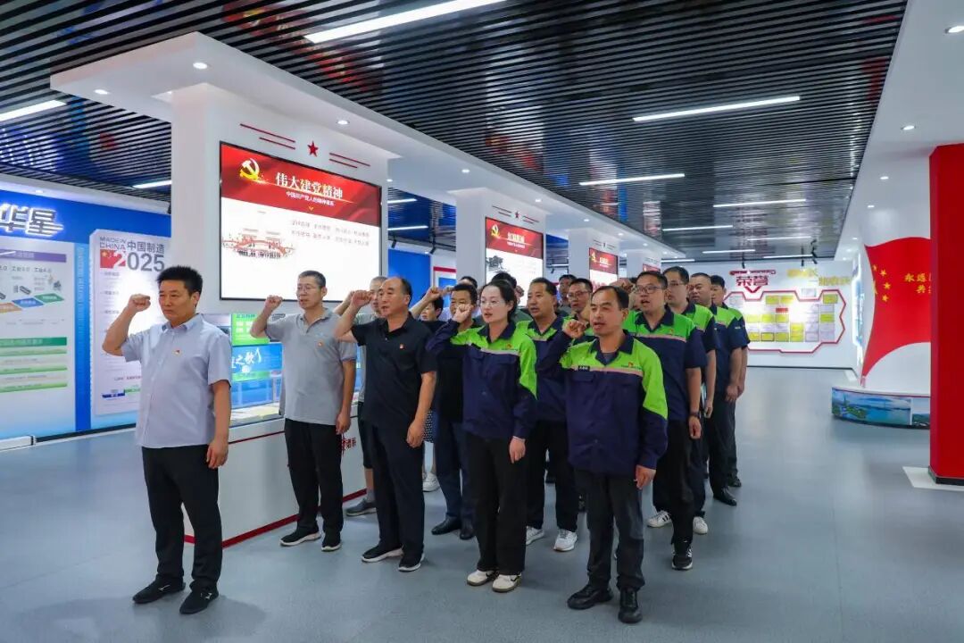 随后,大家相继参观了企业展厅与党建文化展厅,系统了解了华星重工的发展历程、企业文化与党建引领下的创新实践。在党建展厅,双方党员共同面向党旗,庄严重温了入党誓词。