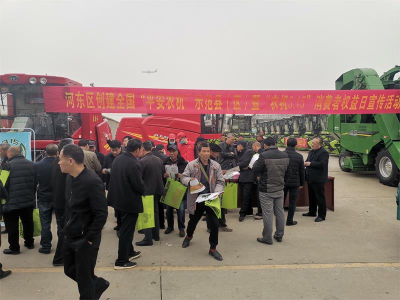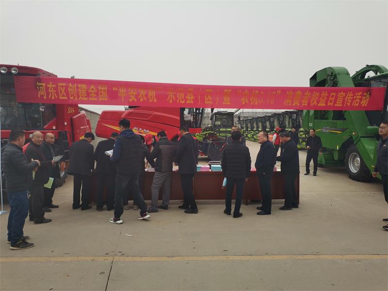 为进一步贯彻落实“保供固安全、振兴畅循环”的有关要求,保障春耕生产,助力粮食增产增收,切实维护农机消费者的合法权益,根据2021年临沂市农机中心的统一部署和安排,3月15日,河东区农机中心在华东机械车辆市场组织开展“农机3·15”消费者权益日宣传活动,购机农户、经销企业、农机合作社社员300余人参加了活动,展出各类农机车辆近800余台(套)。