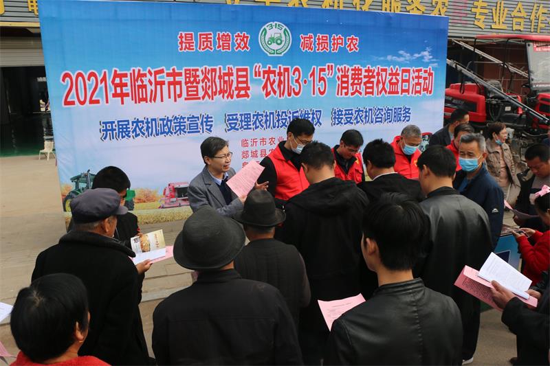 在国际消费者权益日到来之际,2021年临沂市暨郯城县“农机3.15”消费者权益日活动在郯城县泉源镇正式拉开帷幕,市县两级领导莅临活动现场指导活动开展。在活动现场,领导要求有关单位、农机合作社、农机销售企业,全面贯彻落实“提质增效,减损护农”这一活动主题,保障农机具能够及时投入春耕生产,助力粮食增产增收和农机化转型升级,依法维护农机消费者合法权益。