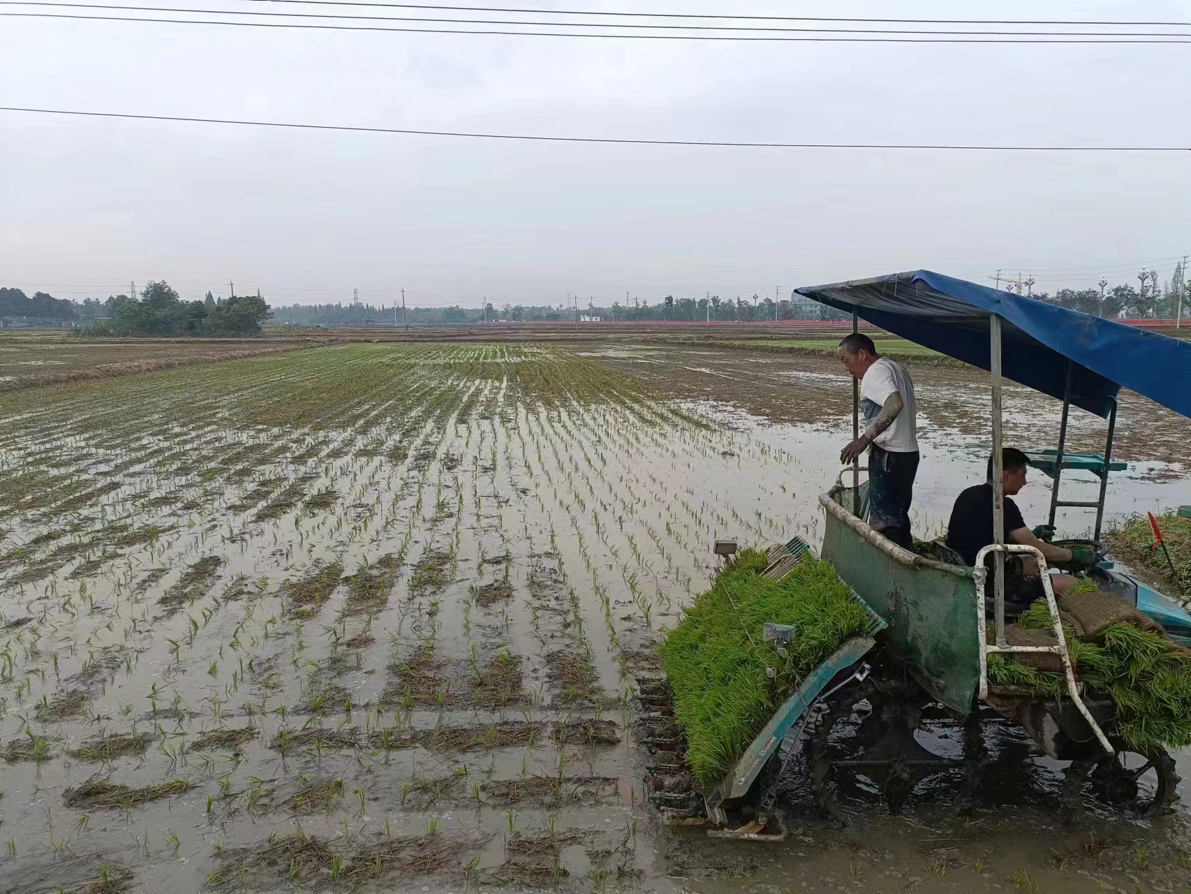 麦收过后正是插秧的黄金时节,在郯城县马头镇三兴村,一台台水稻插秧机正在整理好的水田里来回穿梭,农机手娴熟的技术与插秧机的高效作业完美结合,一株株秧苗从插秧机的秧盘上依次滑落,整齐有序地插入水田里。