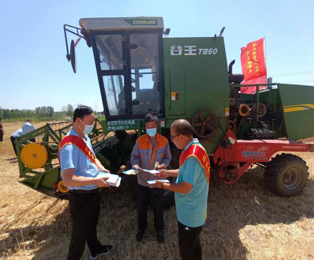 为落实临沂市“三夏”农业生产视频动员会议精神,确保“平安农机”创建扎实有效。5月27日上午,临沂市农机中心在河东区葛沟镇小麦机收作业现场,和河东区农机中心共同举办“平安农机”进田间活动。活动旨在加强对农业机械、驾驶操作人员在“三夏”生产期间的安全指导,增强机手及广大农民群众的农机安全生产意识,预防和减少农机事故。