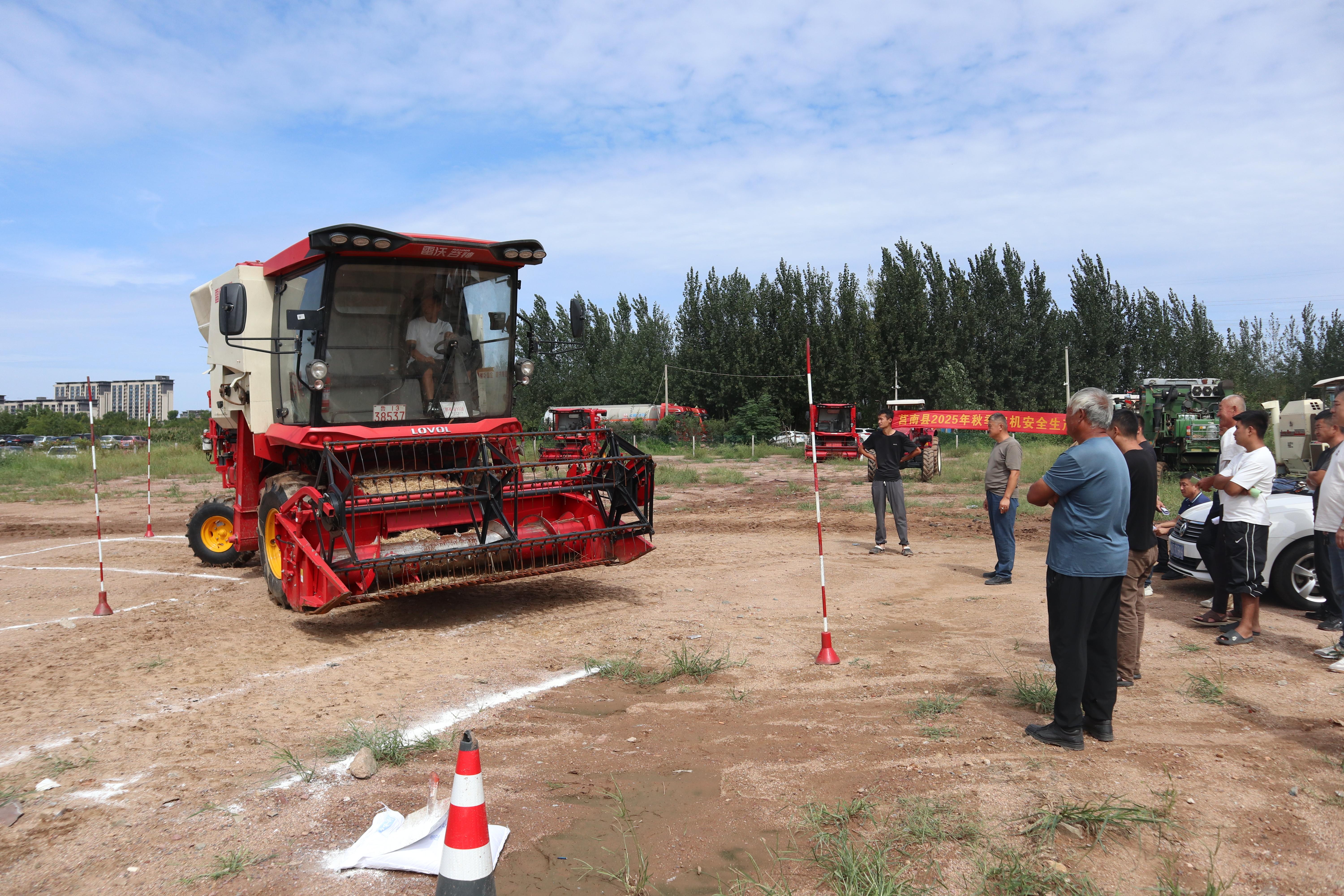 在培训现场,首先由技术人员讲解农机安全法律法规、田间作业安全操作规程、农机事故典型案例分析以及应急处置措施等常识。通过真实案例的警示,深刻剖析无证驾驶、违规操作、设备带病作业等行为的危害,促使每位农机手将“安全第一、预防为主”的理念内化于心、外化于行,时刻绷紧安全生产这根弦。同时,围绕“提质增效减损”目的,针对秸秆还田、机收减损及深耕深松等技术机械设备的正确调整、规范操作要领、作业速度选择、割台高度控制等关键环节,进行了现场讲解。随后,组织现场考试,进一步巩固培训成效。严格按照《拖拉机和联合收割机驾驶证管理规定》的规范化、标准化要求,高标准完成场地考试,共有30名机手顺利通过考试并领取了农机驾驶操作证。