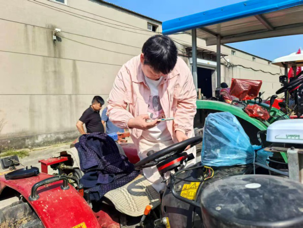 兰陵县农业农村局农机中心工作人员分组深入乡镇(街道)和田间地头进行农作物和地情的勘察,全面详细的摸底,同步跟进天气变化。联合相关部门、乡镇(街道)建立联动调度机制,实现人员与机械全时响应,根据天气、土地墒情动态调度抢收作业。同时紧抓晴好天气窗口,将农机购置补贴作为关键抓手,推动工作人员下沉一线,提供补贴核验、业务办理“田间服务”,让购机群众少跑腿,确保大蒜播种机、北斗导航自动驾驶系统等智能机具及时投用,为秋播秋种筑牢装备基础。