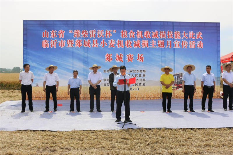 6月8日上午,山东省“潍柴雷沃杯”粮食机收减损技能大比武(郯城赛区)、临沂市小麦机收减损宣传月活动在郯城县泉源镇拉开帷幕。省农业农村厅农机化管理处二级调研员辛章法现场观摩指导,市农业农村局党组书记、局长王康亮对机收减损进行安排部署并宣布大比武开赛。