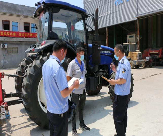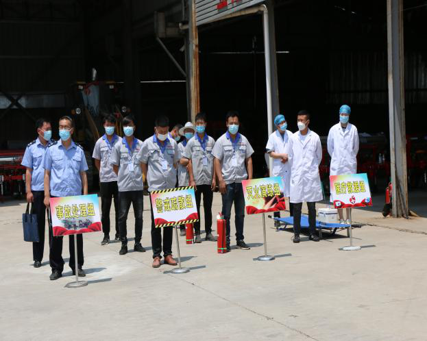 演练现场模拟了联合收割机作业时排气管过热起火和拖拉机操作不当发生伤人事故。接到事故报案后,郯城县农业农村局根据事故情况,立即启动农机事故应急预案,通知农机事故处理人员赶赴现场进行应急处理,同时联动119、120、110进行救援。在灭火现场,消防人员赶赴现场后,实施灭火工作,及时将火源消灭。在伤员救助现场,由警戒人员在事发现场拉起警戒线,保护现场并协助抢救伤员。医护人员进入现场,对受伤驾驶员进行固定骨折腿部后,抬入救护车运送至医院治疗。最后由农机事故处理人员进入现场,实施保护现场、监护肇事人、现场勘查(现场摄影录像、丈量、绘制现场图)等。在农机、消防、卫生等工作人员的大力配合,协同作战,按照规定程序妥善处置演练事项,农机事故应急演练取得圆满成功。