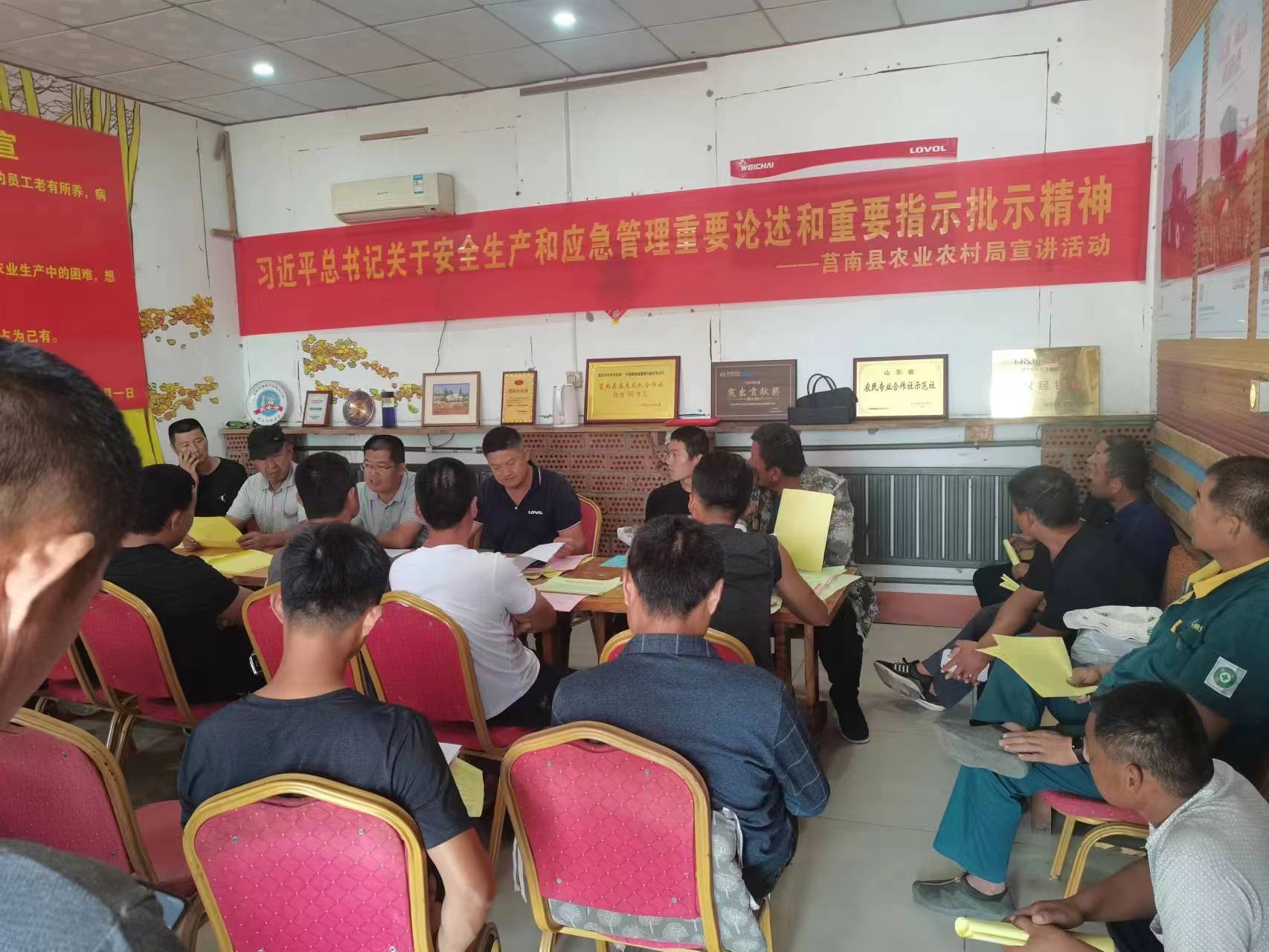 会上学习传达了全县农业行业重大事故隐患专项排查整治2023行动实施方案、习近平总书记关于安全生产和应急管理重要论述和重要指示批示精神、山东省农业农村厅关于组织开展“农机手培训专题月活动”的通知精神。技术人员详细讲解了“三秋”机械化减灾减损生产技术要点。