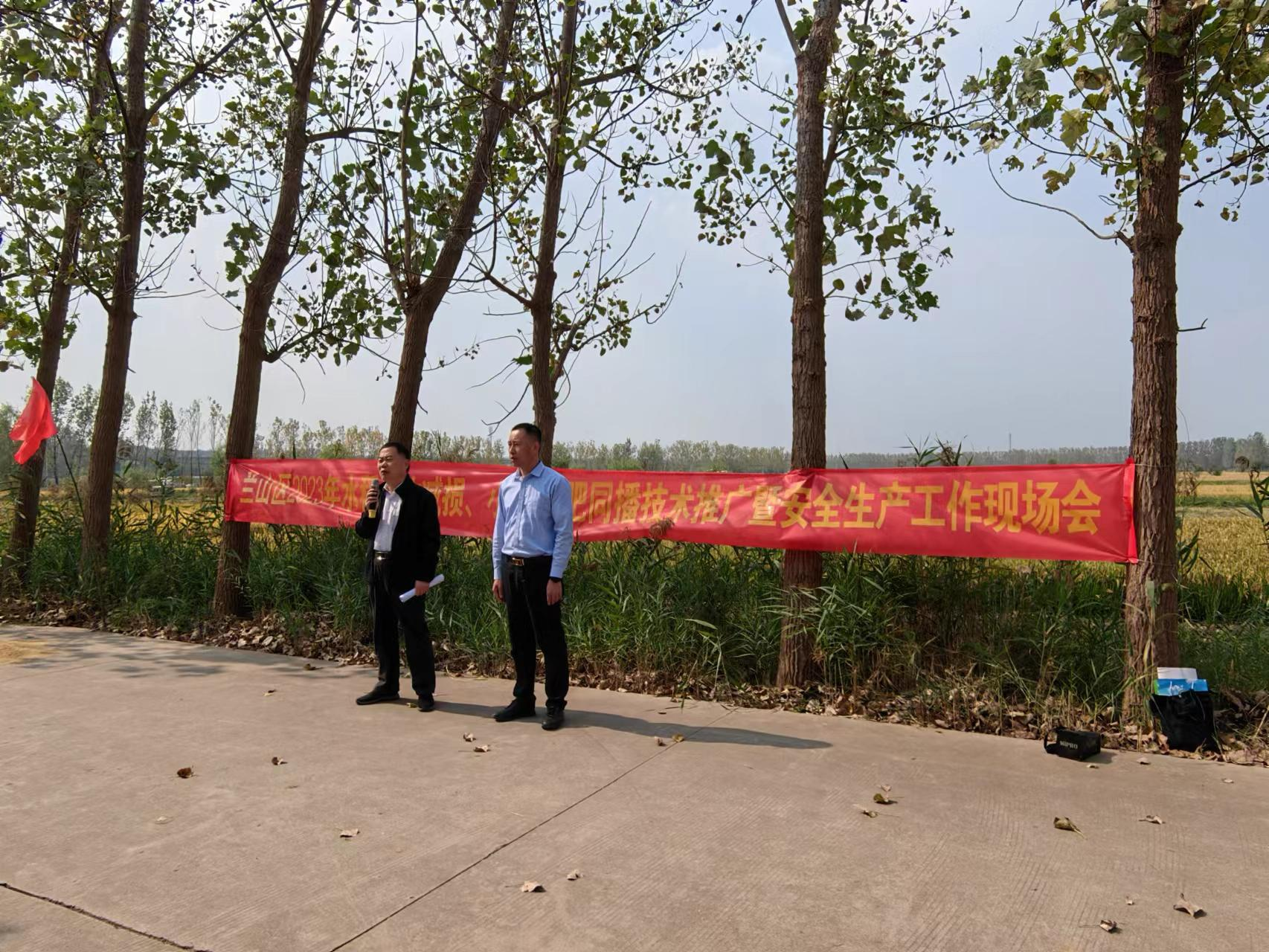 近期,兰山区在枣园镇召开2023年水稻机收减损、小麦种肥同播技术推广暨安全生产现场会。区农业农村局党组成员、农机中心主任冯维吉,枣园镇副书记李刚、人大副主席何俊伟和各镇、经开区农业办主任,各农机合作社理事长及部分机手参加了现场会。