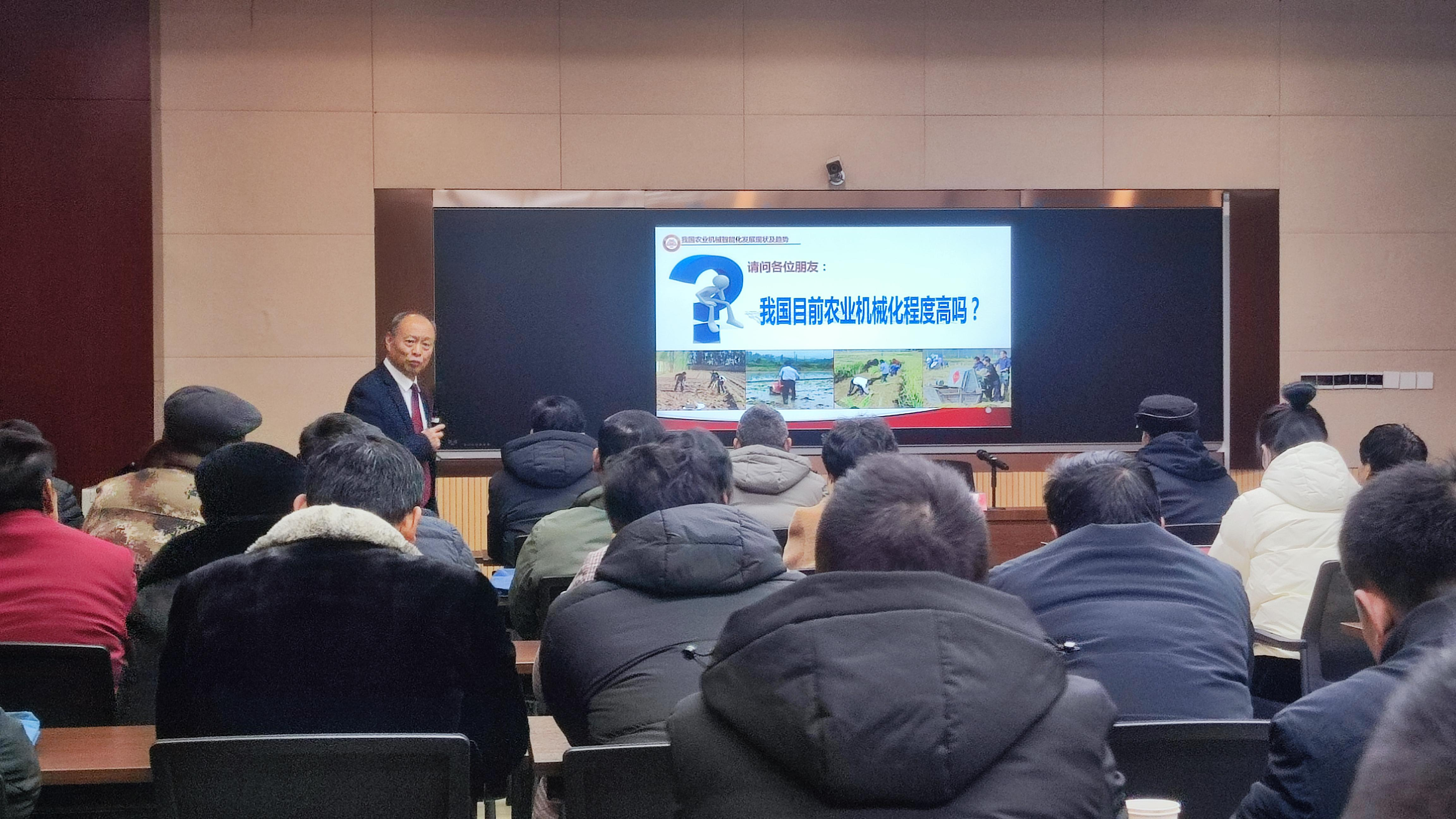 在培训会上,周元军教授主要围绕农机技术推广、建设现代化农业、农业机械智能化发展、农机维修、玉米大豆带状复合种植等多项内容,为参训学员进行了耐心细致的讲解。本次授课内容丰富、贴近生产实际,受到参训人员的一致好评。