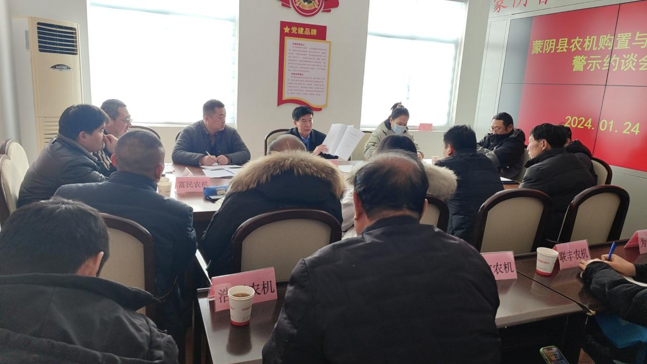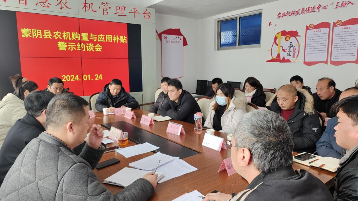2024年是新一轮农机购置与应用补贴政策实施的启动年,新年伊始,临沂市蒙阴县农业机械发展促进中心组织召开农机购置与应用补贴警示约谈会。中心领导班子成员、农机装备股全体工作人员、全县各乡镇街区实施农机购置与应用补贴的农机经销企业和农机报废回收拆解企业的主要负责人参加了会议。