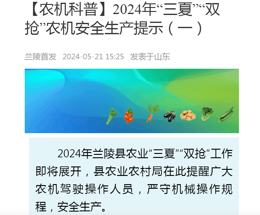 “三夏”生产在即,为确保我县夏季小麦丰产丰收、颗粒归仓,兰陵县农业农村局早谋划早部署,抢抓农时全面做好夏收、夏种和夏管工作,有效夯实全年粮食丰产丰收基础。