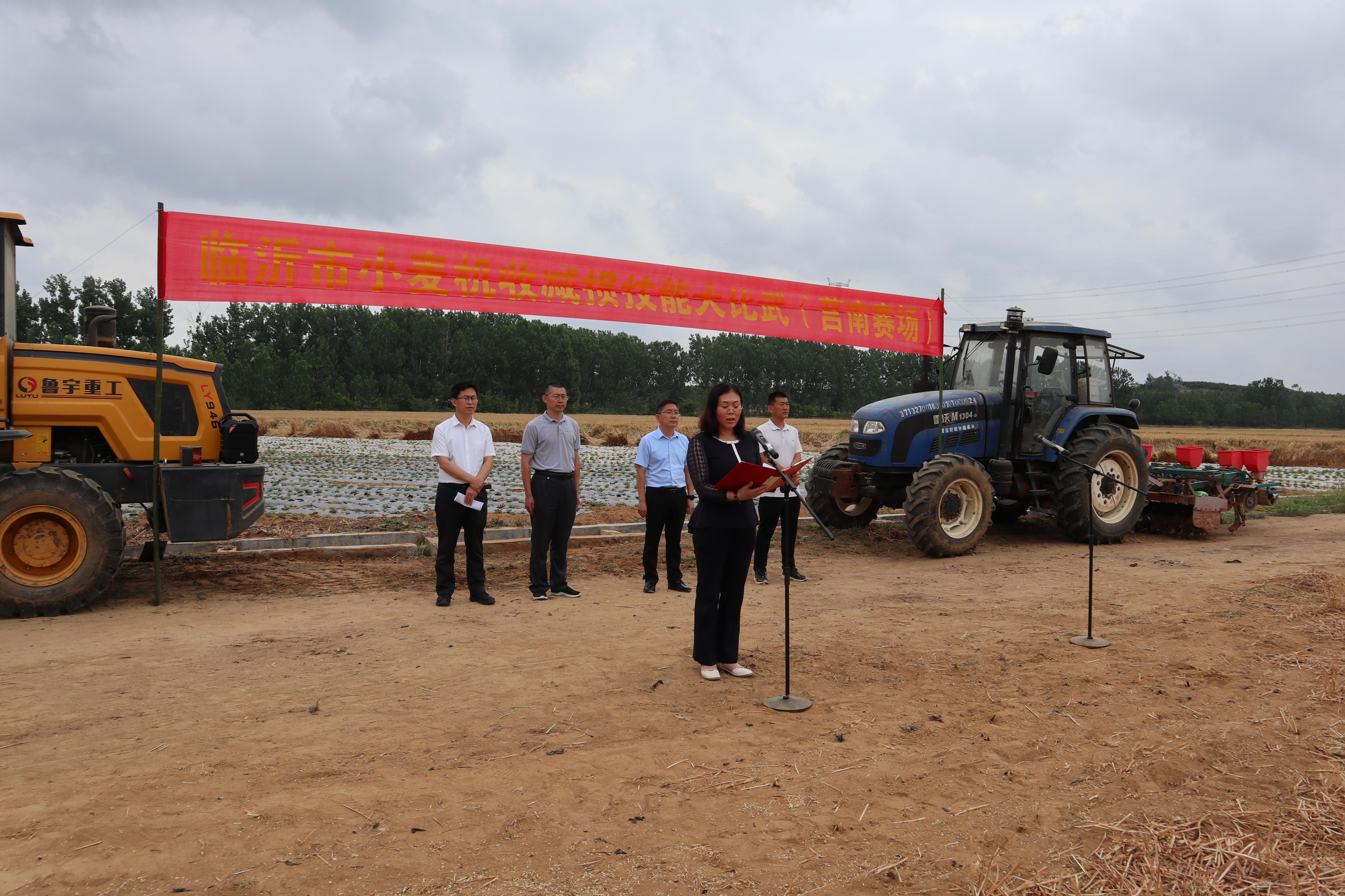 6月8日,临沂市小麦机收减损技能大比武莒南赛场活动在坊前镇顺利举办。市农业农村局农机中心主任曹世杰、副主任张建华、社会化服务科科长赵培芬,莒南县政协副主席、农业农村局局长、乡村振兴局局长曾燕,坊前镇党委书记李永山出席现场会。县农业农村局党组成员、农机中心主任李书兴主持会议。