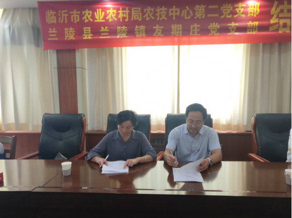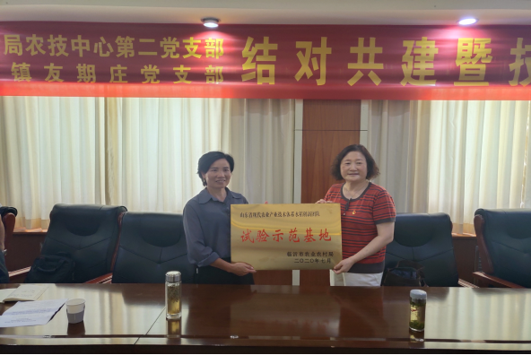 活动期间,农技中心二支部与友期庄村党支部结对搭建支部共建平台,本着“友好相处、资源共享、互相学习、相互协作、共同发展”的原则,双方签订了支部结对共建协议。农技中心二支部依托省现代农业水稻产业技术体系和临沂市玉米创新团队,以友期庄村为水稻玉米新品种新技术试验示范基地,提供新品种、技术培训、指导及有关技术服务。市农业农村局四级调研员宋中东同志、市农技中心副县级干部贺淑杉同志分别向友期庄村授予水稻、玉米试验示范基地牌子。