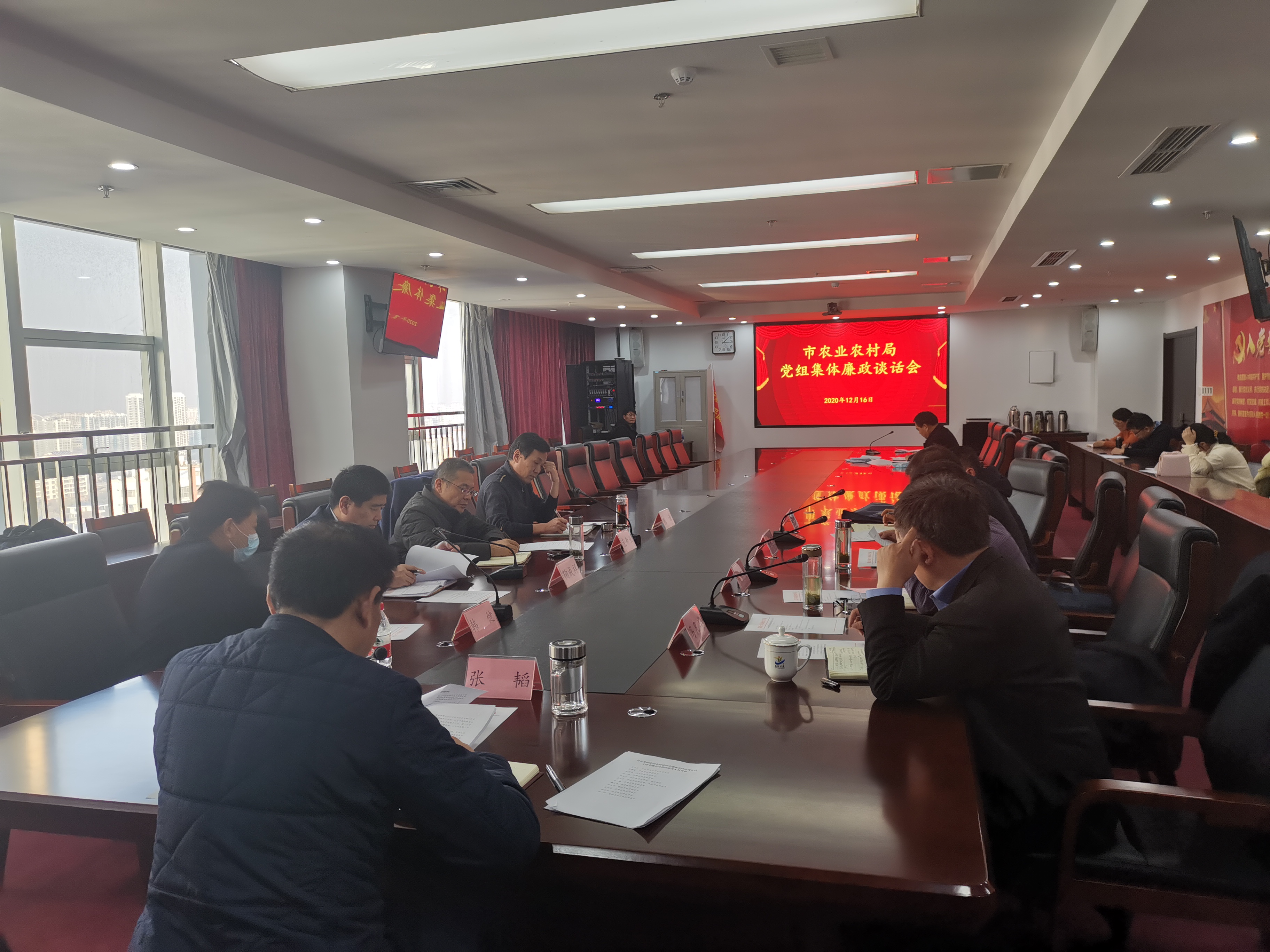 为认真履行管党治党主体责任,推动全面从严治党向纵深发展,12月16日下午,市农业农村局党组召开集体廉政谈话会,听取了2020年班子成员落实全面从严治党要求、履行党风廉政建设“一岗双责”和廉洁自律情况汇报。市委农办主任,市农业农村局党组书记、局长张韬同全体班子成员进行了一次党风廉政建设集体提醒谈话。市纪委监委派驻第九纪检监察组副书记韩健到会指导。