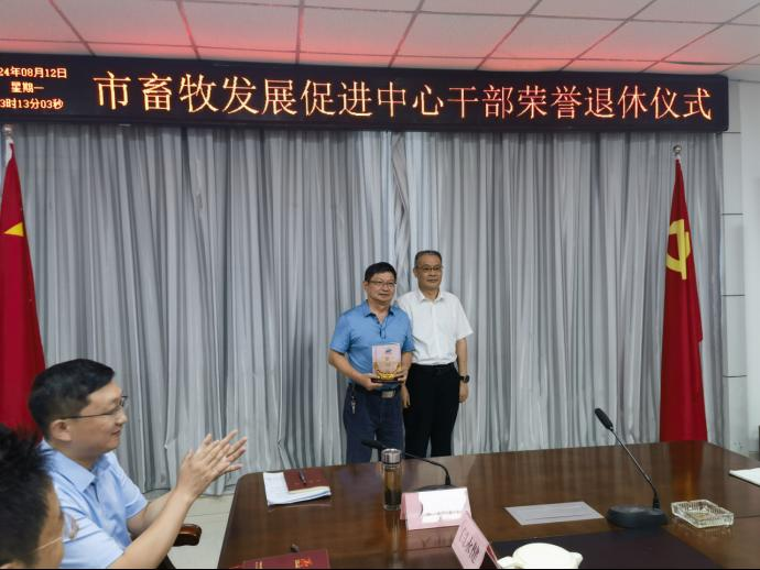 为深入贯彻落实习近平总书记关于“对老干部要思想上关心、生活上照顾、精神上关怀”的指示要求,着力推动新时代老干部工作高质量发展,增强退休干部的荣誉感、归属感和幸福感。8月12日,临沂市畜牧发展促进中心为王亚东同志举办了荣誉退休仪式。