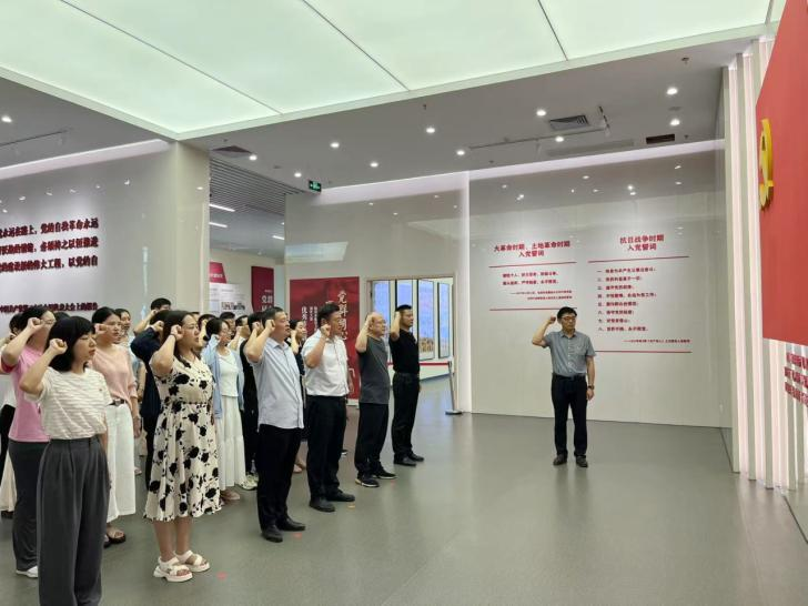 在教育基地讲解员的带领下,全体党员干部依次参观了“思想引领”“挺纪在前”“利剑反腐”“党群同心”主题展厅,认真观看了纪录片、微电影和丰富详实的档案资料,在聆听与思索中深入对照反思,经历了一次触及灵魂的党性教育与思想净化。面向庄严党旗,全体党员举起右拳,重温入党誓词,进一步坚定理想信念。