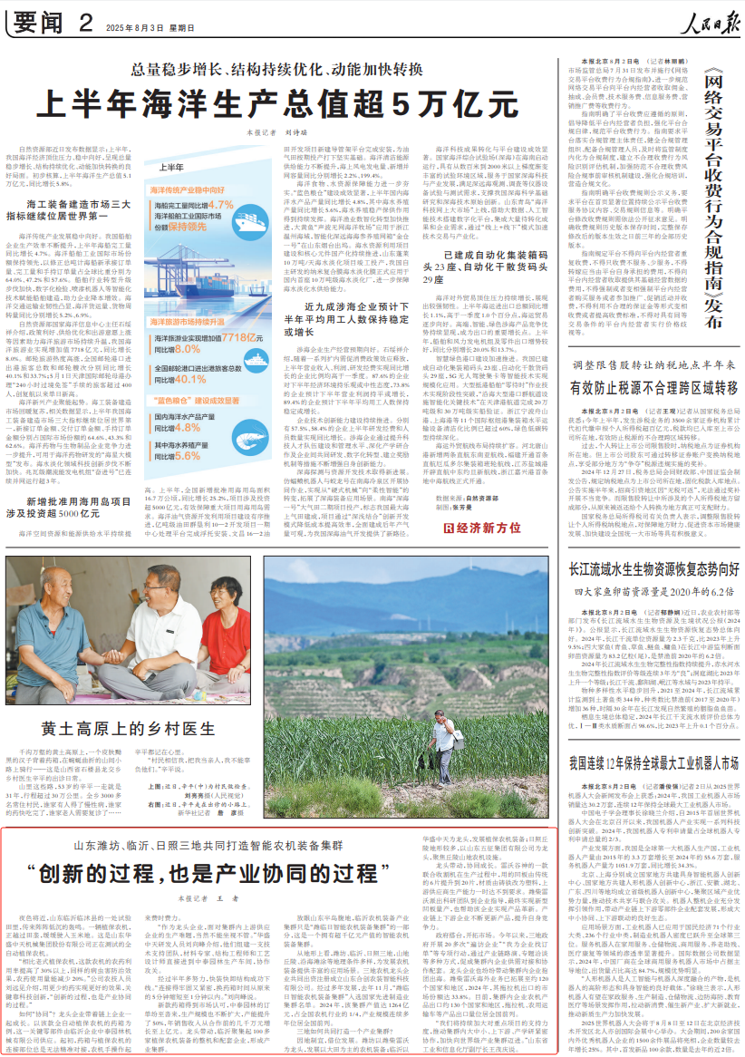 从地形上看,潍坊、临沂、日照三地,山地丘陵、沿海滩涂等地理条件多样,为发展农机装备提供丰富的应用场景。三地农机龙头企业共同出资注册成立山东合创农装智能科技有限公司。经过多年发展,去年11月,“潍临日智能农机装备集群”入选国家先进制造业集群名单。2024年,该集群产值达1264亿元,占全国农机行业的1/4,产业规模连续多年位居全国前列。