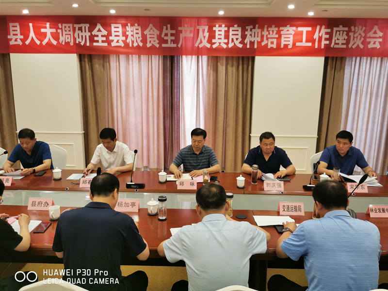 县人大常委会副主任邱春力在座谈调研中指出,近年来,县农业农村局不断加大农业新品种、新技术推广服务力度,夯实粮食生产基础,有力推动了全县粮食生产安全及种业革新发展。同时,对农村劳动力不足、耕地“非粮化”、粮食产出效益低等日益突出的问题进行了分析和研判,要求县政府及相关单位要通过推进土地经营权流转、鼓励发展种植专业合作社、出台遏“非粮化”政策和大力培育本土粮食加工企业等措施,坚决扛稳粮食安全重任,提升粮食安全保障水平,服务全县经济社会发展。