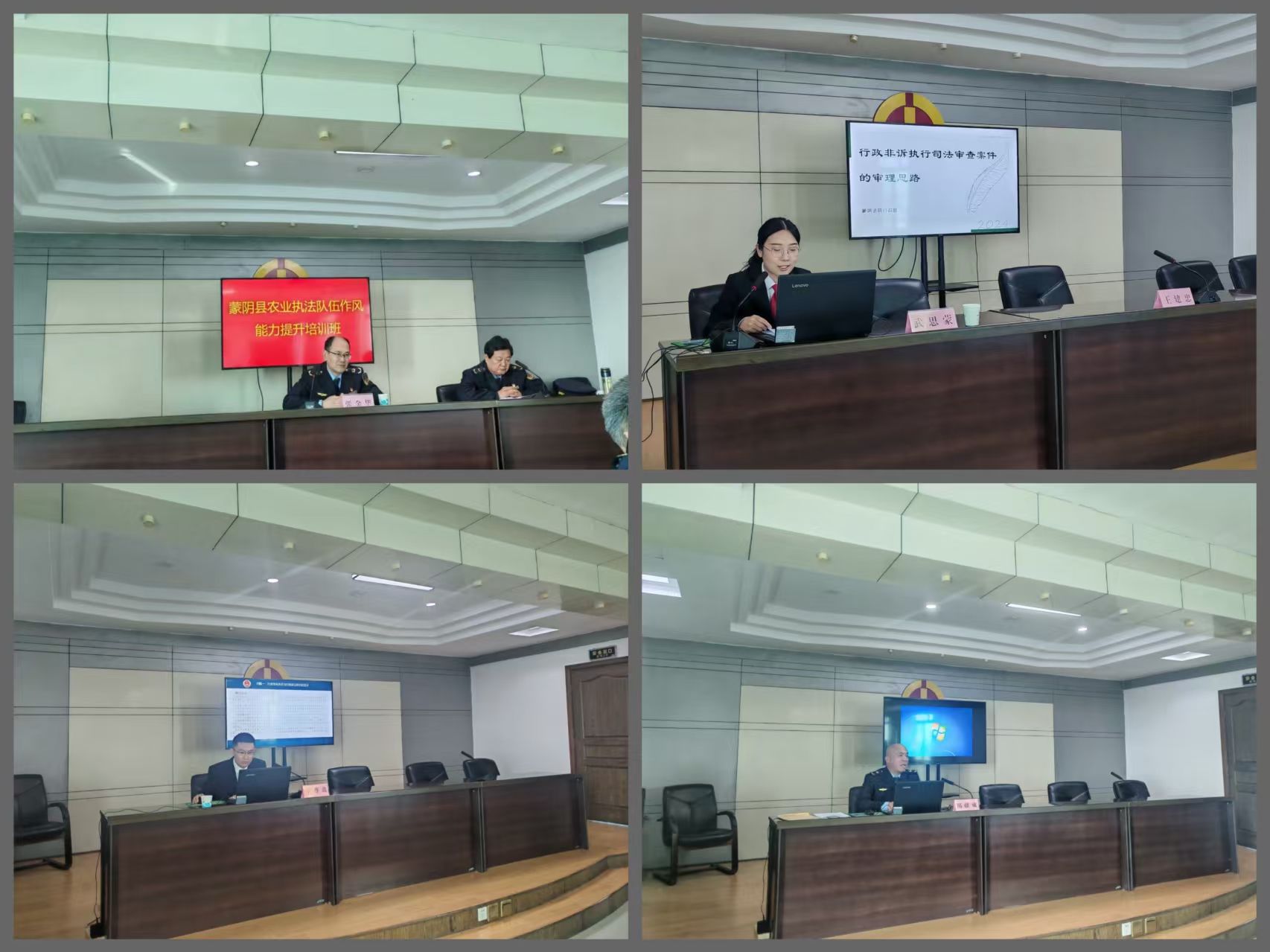 本次培训紧扣“实战、实用、实效”原则,构建了全方位、多层次的教学体系。师资力量由市农业综合执法支队、县纪工委、检察院、公安局、法院及行政执法监督局等单位专家组成,确保教学内容紧贴执法实际需求。课程设置兼具政治高度与实践深度,既涵盖廉政教育、行政案件执行实务、行刑衔接证据固定、行政非诉案件执行、宅基地管理法规解读等核心执法业务,也包含党的二十届四中全会精神学习、“鲁执法”系统实操应用、分级分类监管等专项内容,精准对接农业执法新形势新要求。