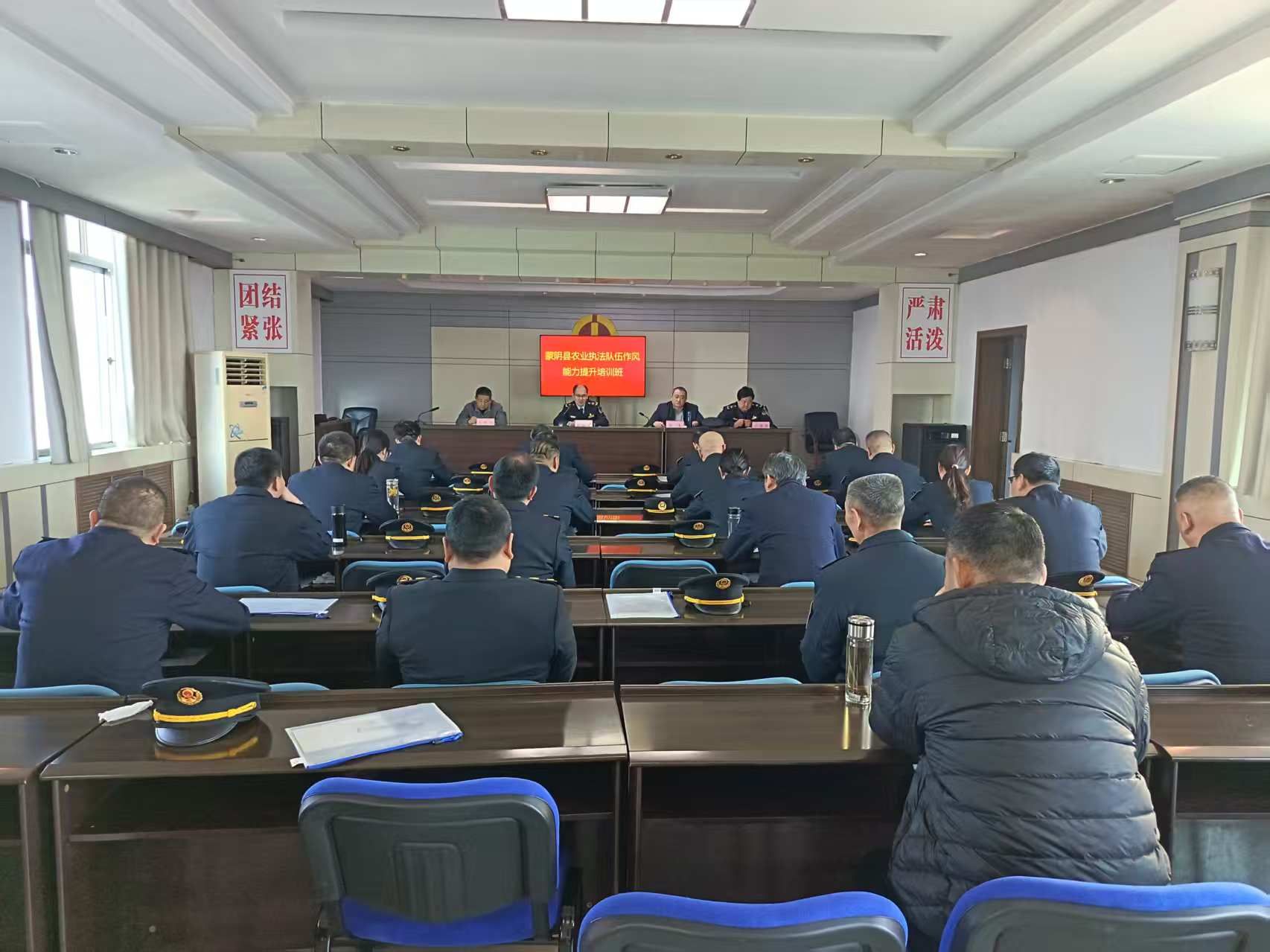 为深入贯彻落实市县干部队伍“作风能力建设年”工作部署,全面提升农业执法人员专业素养和履职能力,锻造政治过硬、本领高强、作风优良的护农执法铁军,3月9日,蒙阴县农业农村局组织开展为期5天的农业执法队伍作风能力提升培训班,全体执法人员以饱满热情投入集中学习。