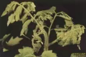 最显著的症状是叶片失绿或变桔红色。生长点发暗,严重时生长点凋萎死亡。茎及叶柄脆弱,易使叶片脱落。根系发育不良变褐色。易产生畸形果,果皮上有褐色斑点。