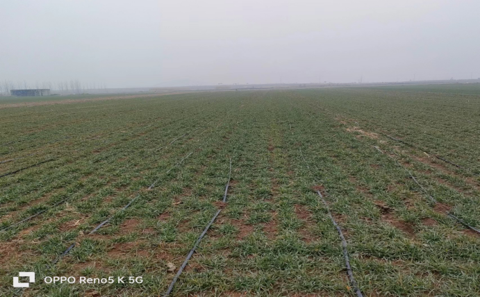 为保证小麦在需水、需肥的各生长时期将水分和养分持续均匀施到根际周围,莒南县壮岗镇前莲花村志成种植家庭农场200亩小麦在今年全部实施水肥一体化高效节水的滴灌技术措施,最大限度地利用水分和肥料,进一步提高水肥利用率。