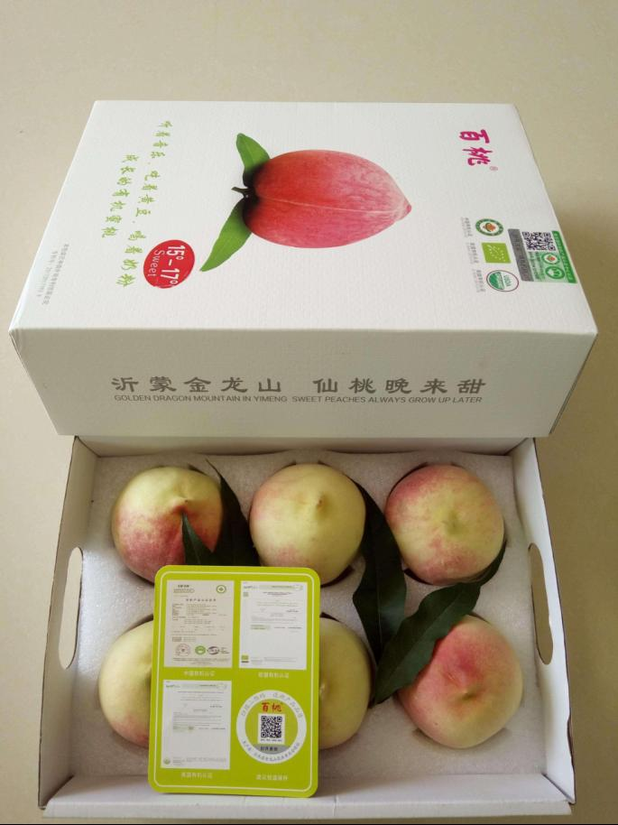 1.园区介绍:金龙山农业专业合作社位于泉庄镇尹家峪村,园区内1781亩有机蜜桃园,种植品种为晚熟金秋红蜜和映霜红桃。该园区蜜桃注册了“百桃”商标,产品获得了欧盟、美国、中国三大认证,园区实行生产有机化、质量全程追溯。