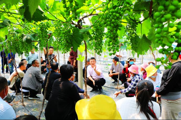 据介绍,郯城县沭丰合作社成立于2015年5月,是党支部领办合作社,目前,合作社有社员122人,葡萄大棚600亩。2023年,合作社积极与市、县农发集团合作,探索构建“党建引领、国企助力、科技赋能、多方共赢”乡村振兴模式。市农发投资3000万元,同时发动合作社63名社员现金入股32.88万元,兴建葡萄暖棚、农产品交易中心和仓储基地,葡萄棚建成后免费先给农户使用,农户每年从收益中归还市农发建棚成本,还清成本后棚属于农户自己所有,入股社员根据收益情况可获得相应分红。