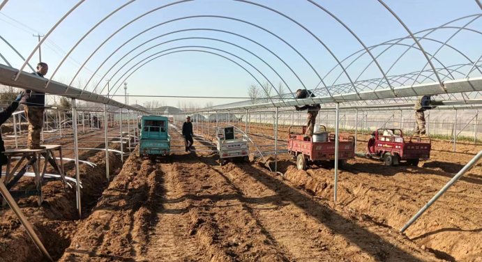 腊月伊始,走进郯城县高峰头镇千亩蒲汪葡萄种植基地,工人们正在整地搭棚支钢架,一派繁忙的景象。