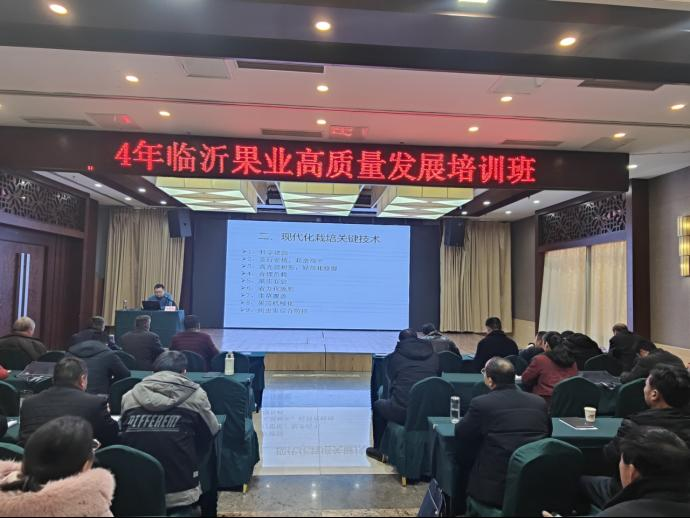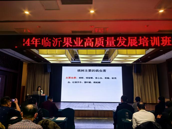 1月25日至1月26日,2024年全市果业高质量发展培训班(桃、板栗)在沂南县举办。省农业农村厅农技中心作物二部副部长高文胜研究员,省果品产业技术体系首席专家、省果树研究所副所长沈广宁研究员,沂南县人民政府副县长彭勇参加开班仪式。省果品产业技术体系临沂综合试验站站长王延书博士主持开班仪式。各县区果树技术推广人员、果树专业合作社、家庭农场等新型经营主体技术负责人和果树种植大户共160余人参加培训。