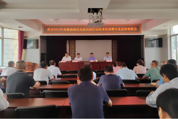 6月5日,费县组织召开2022年度粮油绿色高质高效行动小麦管理技术培训暨小麦品种观摩会,山东省农业科学院作物研究所研究员王旭清、张宾,省农科院计划科副科长焦其庆,县农技中心主任李全法出席会议。