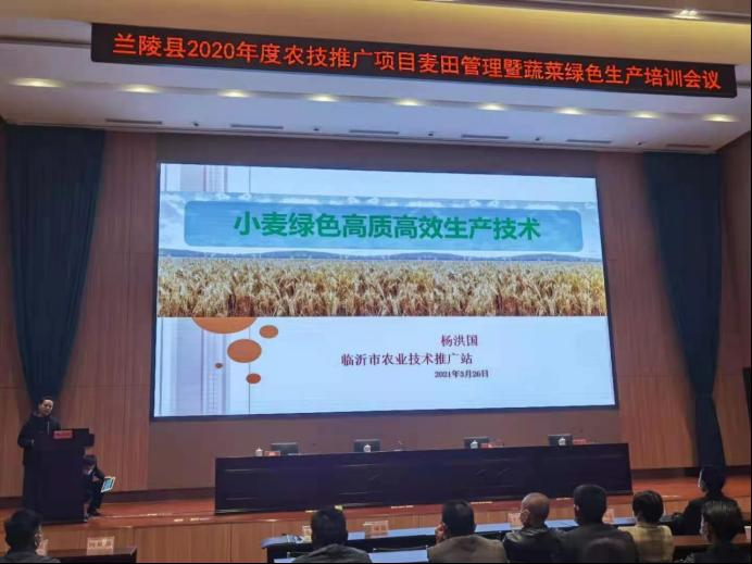 会议由兰陵县生态农业发展中心主任吴汉花主持,县农业农村局党组成员、副局长谭常伟对项目实施作了重要安排,市农技中心农技站长杨洪国、环保站站长王献杰对小麦绿色高质高效生产、蔬菜绿色生产作了相关培训。