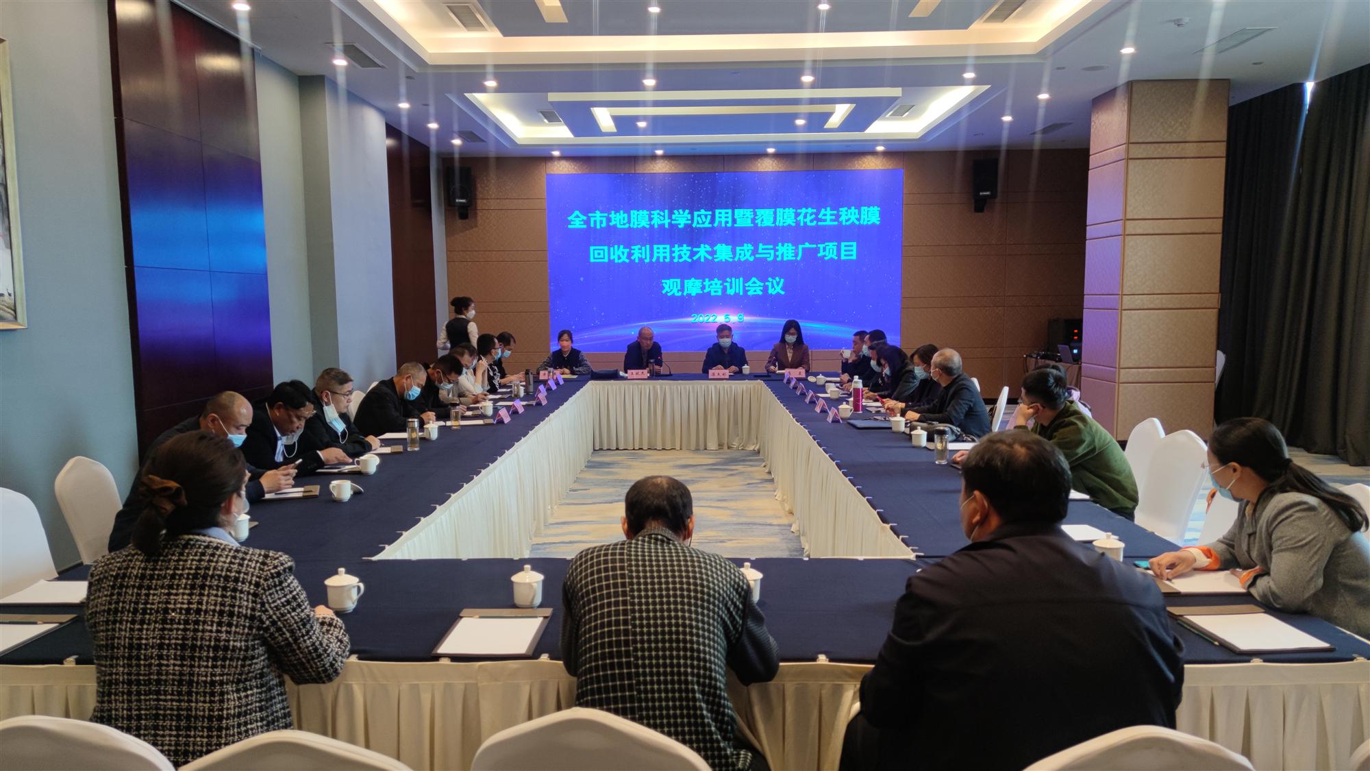 会上部署了全市地膜科学使用和回收工作;邀请省农业机械研究院副院长康建明线上培训了花生全程机械化生产及秧膜分离回收技术;现场观摩了全生物可降解地膜、标准地膜覆盖春花生应用现场,展示了多种机械化播种覆膜方式,宣传了地膜科学应用知识。