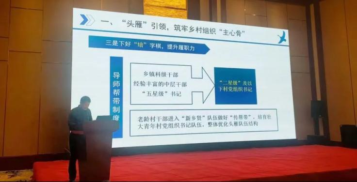 “头雁”引领,筑牢乡村组织“主心骨”。拓宽选人视野,畅通选任渠道,加大从致富带头人、退役军人、返乡创业人才、返乡毕业大学生等群体中选配村党组织书记力度,选优配强头雁队伍。目前,已选配村党组织书记23人,其中兵支书6人。开展头雁队伍“五比五先”整体优化提升专项行动,进行擂台比武33次,招引在外人才担任村“两委”36人,选配村级后备人才1448人。建立导师帮带制度,选派乡镇干部结对帮带,老龄村干部进入“新乡贤”队伍做好“传帮带”。