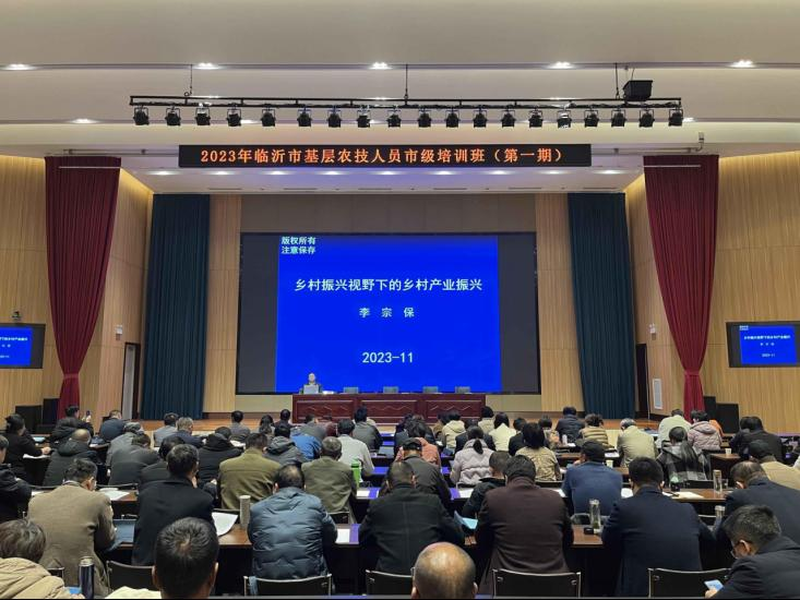 为全面推进我市乡村振兴和农业高质量发展,培育一支知识全面、技能过硬、服务优良的基层农技推广骨干人才队伍,按照省农业农村厅的统一部署和《关于做好2023年临沂市基层农技人员培训工作的通知》要求,11月20日,临沂市2023年基层农技人员培训班第一期种植业班在兰陵新农人培训基地正式开班。培训班由临沂市农业科学院承办,来自兰陵、费县、沂水、莒南、蒙阴等五个县区116名基层农技人员参加本次培训。