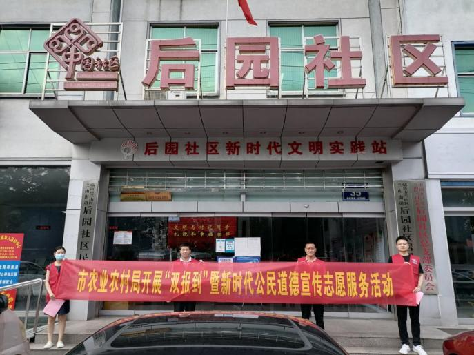 为进一步推进党员到社区“双报到”工作,提升社区居民文明素养,6月28日,市农业农村局赴后园社区开展“双报到”暨新时代公民道德宣传志愿服务活动。