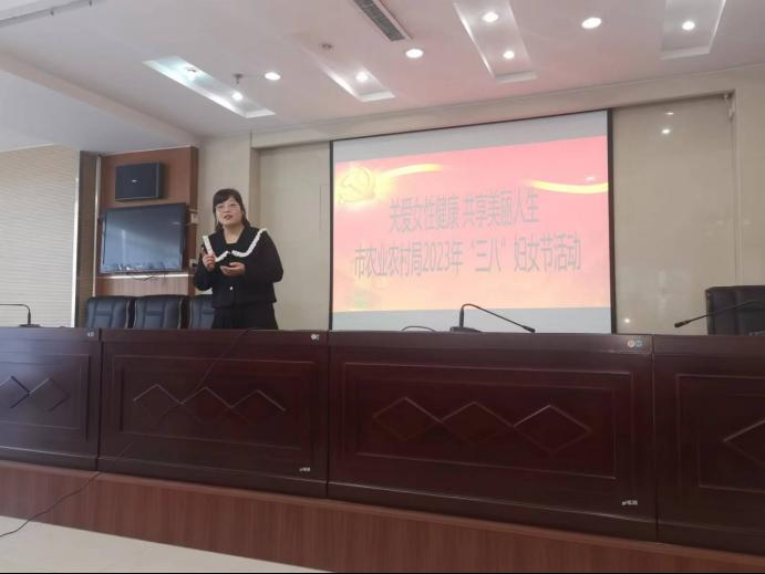 为加强对广大女性职工的人文关怀,增强女职工的健康意识,引导大家正确缓解和释放职场、生活中的双重压力,提高健康调适能力,营造关心、关爱女职工成长良好氛围,3月2日,市农业农村局举办“关爱女性健康 共享美丽人生”女职工健康知识讲座,邀请了市妇幼保健院副主任医师贾艳艳现场授课。
