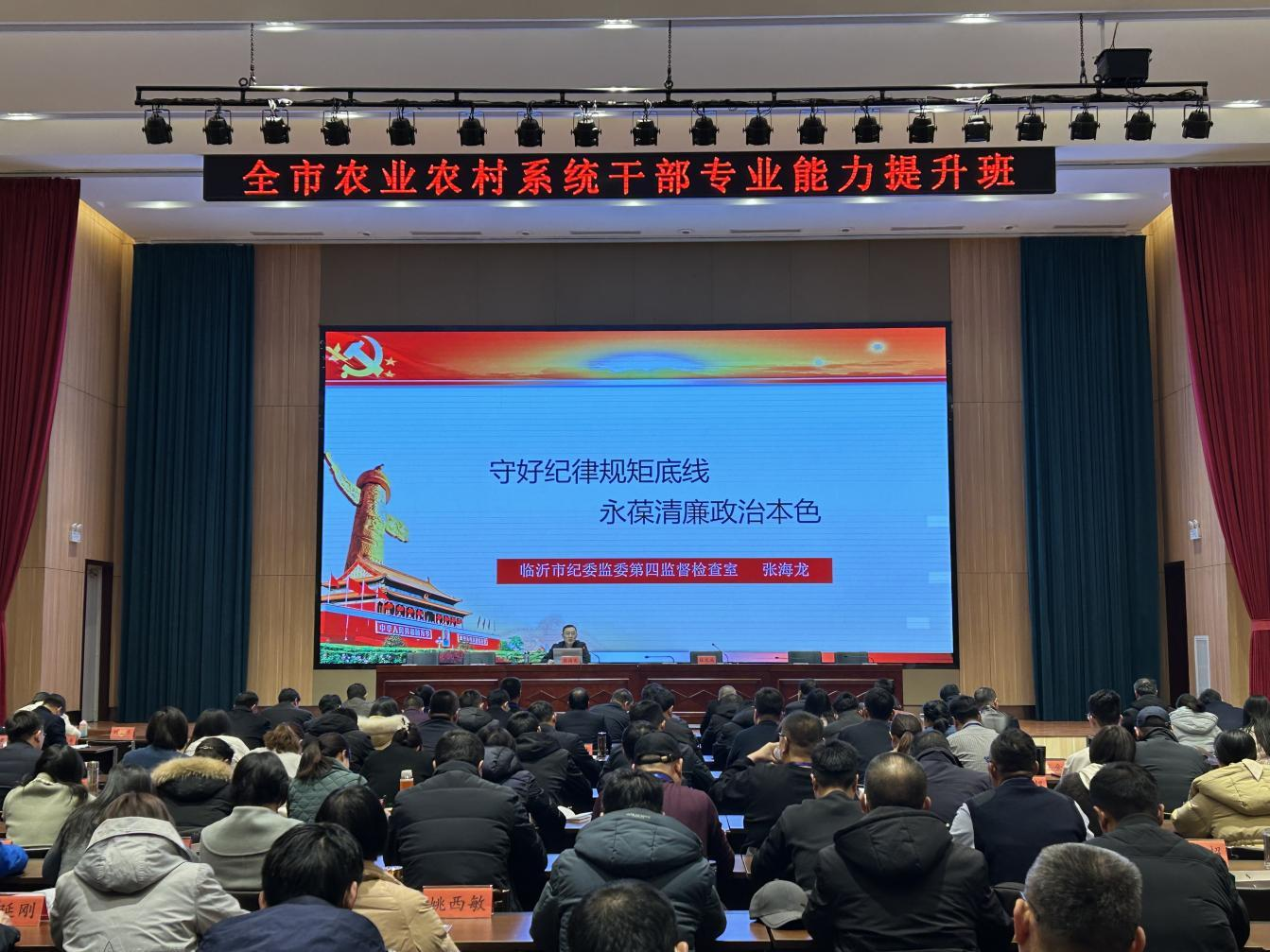 为进一步落实全面从严治党主体责任,教育引导党员干部知敬畏、存戒惧、守底线,2月22日,市农业农村局邀请市纪委监委第四监督检查室主任张海龙同志作廉政教育报告,各县区农业农村局班子成员及局属事业单位主要负责同志,市农业农村局全体干部职工参加。