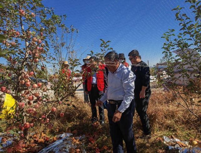 志愿者查勘果园秋季施肥情况
