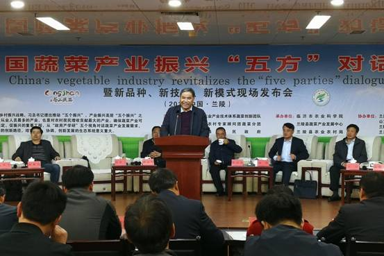 2019年4月11日下午,在第七届兰陵蔬菜产业博览会期间,由山东省现代农业产业技术体系蔬菜创新团队,山东省农业农村专家顾问团蔬菜分团和兰陵县人民政府联合主办了中国蔬菜产业振兴“五方”对话会暨“新品种、新技术、新模式”现场发布会,以“聚智慧、促创新、谋振兴”为主题,从“政、用、产、学、研”五个视角对话蔬菜产业现状和需求,探索高效率、高质量振兴的发展路径。参加本次会议的有省蔬菜创新团队相关岗位专家和试验站长,省农业农村专家顾问团蔬菜分团的专家,以及兰陵县相关部门单位,“鸿雁人才、头雁人才”代表等150余人。兰陵县政府刘志军副县长、蔬菜分团焦子高团长分别致辞,开幕式由省农业农村专家顾问团蔬菜分团成员、临沂市农业科学院党委书记、院长周绪元研究员主持,对话交流活动由蔬菜创新团队岗位专家高俊杰研究员主持。参加交流发言的专家有:刘世琦、高中强、刘涛、张元国、马井玉、郑长英、王富、史庆华、岳凤丽、周绪元、李辉。