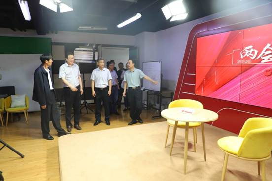 6月18日,临沂市农科院党委委员、副院长朱新亮同志、党委副书记杜玉德同志到临沂日报报业集团融媒采集中心、编辑中心、视频演播室、新媒体中心参观学习,报业集团党委副书记、总经理陈学善、党委委员、副总经理张贺春、党委委员、副总经理滕怀飞陪同并出席座谈会。