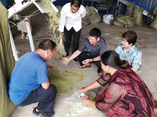 服务队专家随合作社负责人来到精选分级车间,认真查看了精选机的分级过程和精选后的产品,然后根据药典规定的金银花外观特征,提出了有关意见,建议工程师适当调整有关参数。
