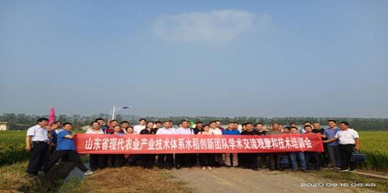 2020年9月15日-16日“山东省现代农业产业技术体系水稻创新团队学术交流现场观摩和技术培训会”在临沂召开,山东省现代农业产业技术体系水稻创新团队首席专家周学标、各岗位专家、试验站长及团队成员、山东省农科院水稻研究所李景岭书记、临沂市农科院党委副书记杜玉德、河东区人大常委会副主任李兴国、河东区农业农村局领导及各乡镇街道办事处农技部门负责同志、技术骨干、同德农业科技开发服务有限公司等科技示范基地、专业合作社、家庭农场负责人、种粮大户、扶贫户等60余人参加了会议。
