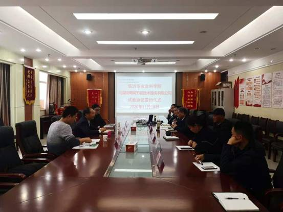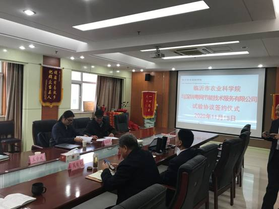 11月18日,临沂市农科院与深圳粤网节能技术服务有限公司举办试验协议签约仪式,市农科院党委书记、院长周绪元,临沂大学生命科学学院院长王学斌和深圳粤网节能技术服务有限公司项目经理程泳天及院有关领导、科研人员出席签约仪式。仪式在临沂市农科院举行。