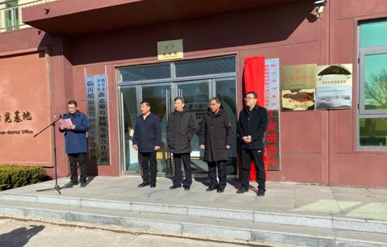 揭牌仪式由梅家埠街道办事处主任伊传斌主持,临沂市农业科学院党委书记、院长周绪元和临沂市河东区、经开区干部下基层党总支书记、市纪委监委派驻一组纪检书记、一级调研员徐光共同为临沂市河东区葡萄研究院揭牌;临沂市河东区副区长、红十字会会长吴世强,临沂市河东区乡村振兴服务四队队长、市委统战部四级调研员沙兆武,河东区农业农村局局长李汉仁及街道、合作社、种植户等50余人参加。